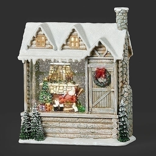9"H Lighted Swirl Log Cabin - Sleeping Santa